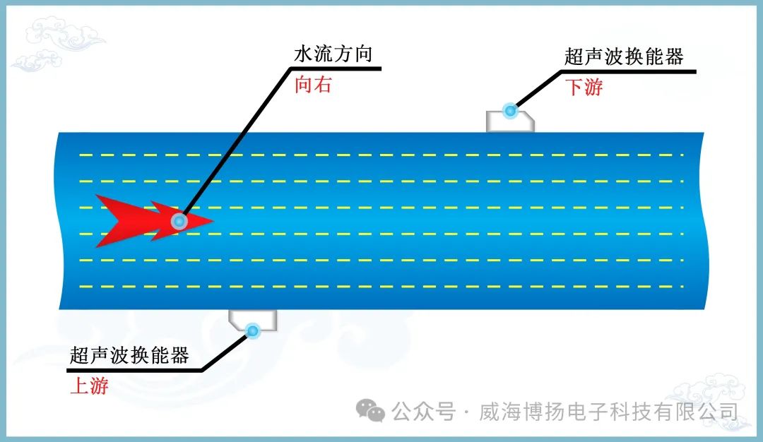2. 傳播時間差:當流體處於靜止狀態時,超聲(shēng)波傳(chuán)播的(de)時間是相同的。當流(liú)體開始流動(dòng)時,由於流(liú)速的影響,超聲波的傳播路徑和時間會發(fā)生變(biàn)化。通(tōng)過比較上下遊換能器分別發出超聲波信號(hào)的傳播時間(jiān)差,我們(men)就能計算出流體(tǐ)的流速。