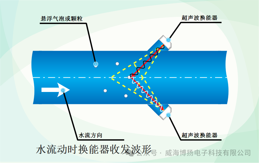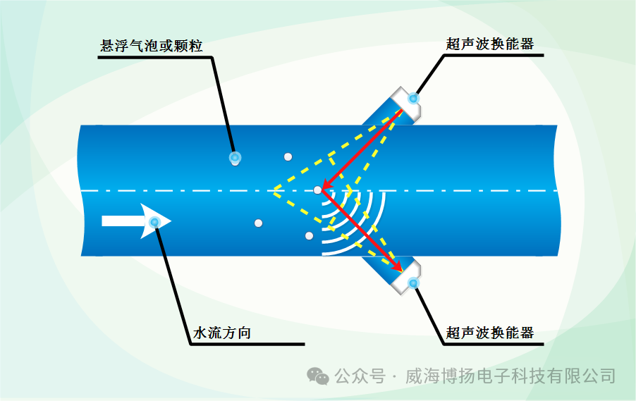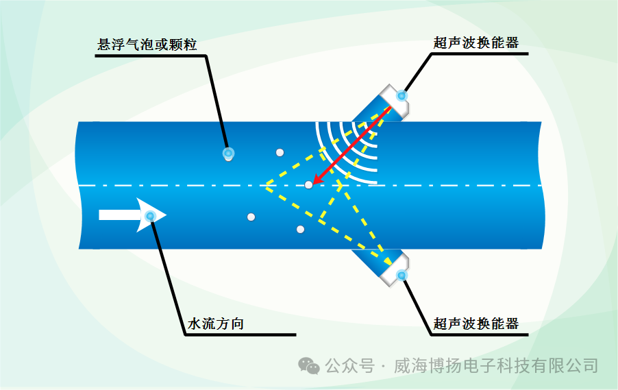 2. 反射與多普勒頻移:當超聲波遇到流體中的懸浮顆粒或氣泡時,會被反射回來。如果流體(tǐ)是靜止的,反射回來的(de)超聲波頻率與發射的頻率相同。但如(rú)果流體在流動,反射回來的超聲波頻率會因為多普勒效應而發生變化。